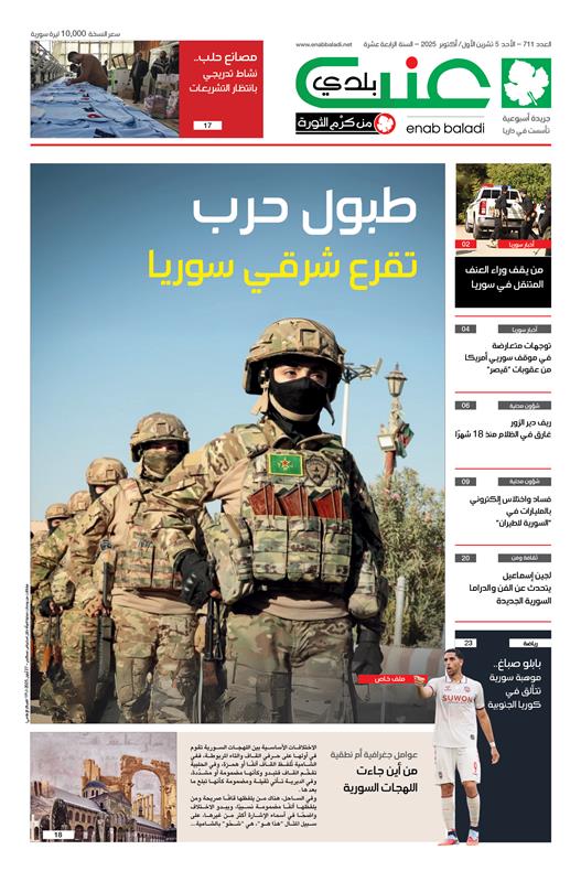 الرئيسية > أعداد الجريدة عنب بلدي – العدد 711 – الأحد 5 تشرين الأول 2025 2025/10/05 11:58 ص أعداد الجريدة, الجريدة المطبوعة enab_get_authors_shortcode مقالات متعلقةإصابة خمسة مدنيين بقصف في ريف حلب الغربيموسكو تستدعي السفير الإسرائيلي عقب إسقاط طائرتها في سورياأحمد البياسي.. نجا من مجزرة "البيضا" ثم اعتقل واختفىاختبار لهجة التهجير أعداد الجريدة عنب بلدي – العدد 710 – الأحد 28 أيلول 2025 عنب بلدي – العدد 709 – الأحد 21 أيلول 2025 عنب بلدي – العدد 708 – الأحد 14 أيلول 2025 المزيد من أعداد الجريدة