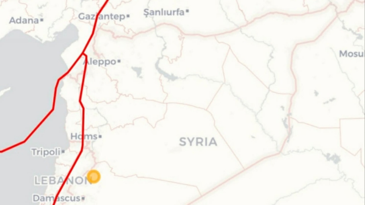 camera iconموقع الهزة الأرضية غرب مدينة يبرود بريف دمشق - 2 تشرين الثاني 2025 (المركز الوطني للزلازل/فيسبوك)
