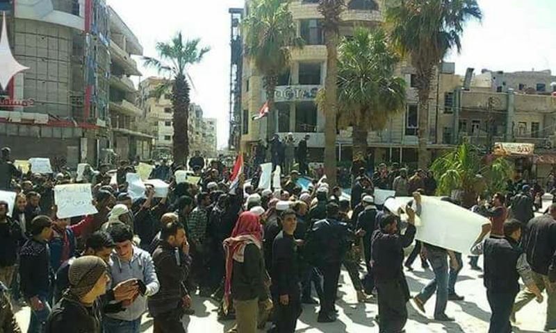 واعتقل فصيل “فيلق الرحمن” عبد الخالق وهبة والشيخ أحمد سعدية، في آذار الماضي، بعد أن رفعا علم النظام السوري في ساحة المدينة العامة، وحرضا على خروج مظاهرات تطالب بخروج فصائل المعارضة من المنطقة وتسليمها لقوات الأسد.